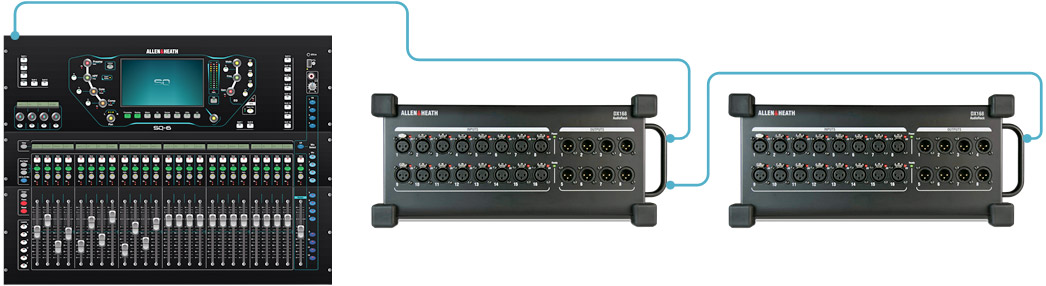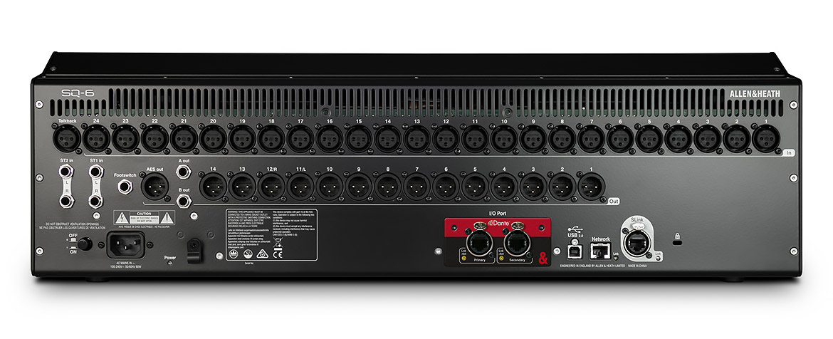 SQ-6 has all the onboard I/O you need for standalone operation. Thanks to its SLink intelligent port, SQ can also be expanded up to a total of 48 mic inputs via a family of 96kHz and 48kHz rack and stage box expanders (e.g. AB168, AR2412, AR84 and DX168), making it a flexible, mix ‘n’ match solution for owners of other Allen & Heath digital systems. You can also link your SQ directly to another SQ or even a dLive system.