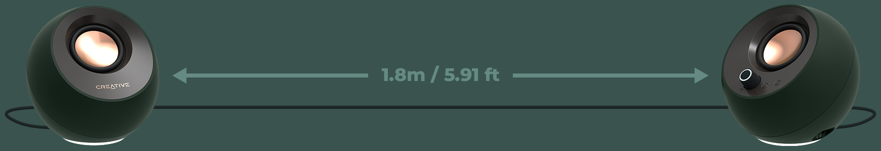 A long-requested feature is also finally here! Now featuring longer wires (1.8m / 5.9 ft) from the left to right speaker, you'll have more flexibility in how the Creative Pebble Pro should be placed on your desk.