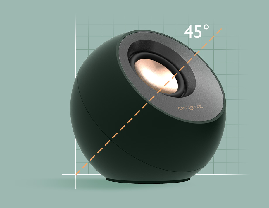 All that audio in a single sweet spot. As is the signature design of the Creative Pebble series, Creative Pebble Pro features the same 45° elevated drivers, specifically angled to direct audio straight to your ears for an immersive and personal listening experience.