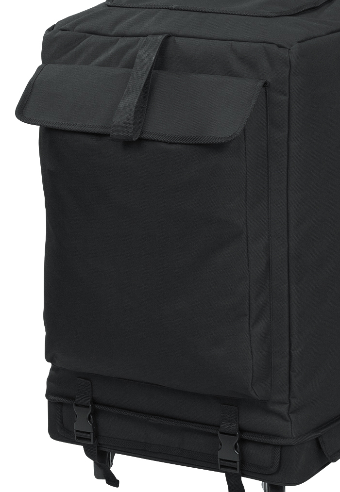 A large exterior pocket provides ample storage for cables, hardware and accessories