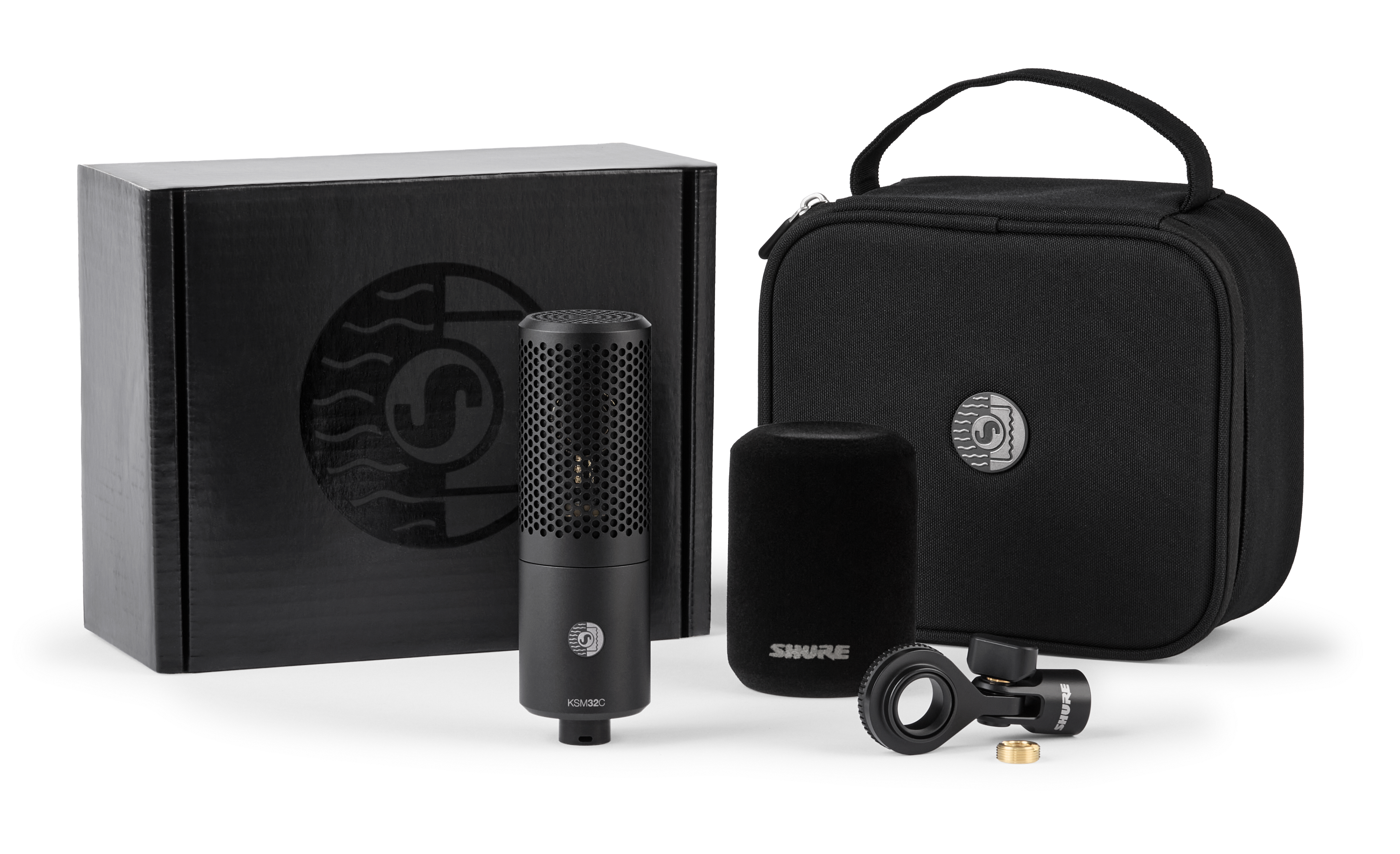 Featuring a precision engineered ¾” capsule with embossed Mylar diaphragm, the KSM32C delivers a smooth, balanced response and exceptional low-frequency performance typically found in 1” capsules. The exceptional off-axis rejection ensures surrounding instruments and room reflections stay out of the mix. Combined with ultra-low self-noise, the result is cleaner, more isolated recordings that preserve the detail of the source. Ideal for vocals, instruments, drum overheads, and ensembles. Available in two bundled kits for studio and stage applications: The KSM32C/HM Stage Kit includes a hard mount, premium case and flocked foam windscreen; while the KSM32C/SM Studio Kit includes a shock mount, magnetic pop filter, premium case and threaded adapter.