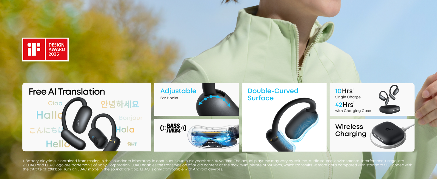 - A Perfect Fit for Every Ear:soundcore's innovative 4-level adjustable ear hooks ensure a comfortable fit tailored to over 99% of ear shapes and sizes.