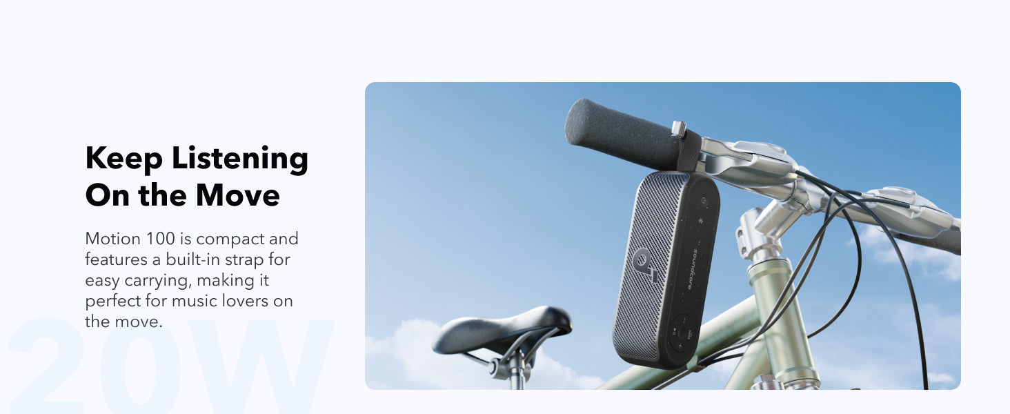 Ultra-Portable: Designed for life on the move, Motion 100 portable speaker's compact size and built-in strap make it easy to carry with you wherever you go.