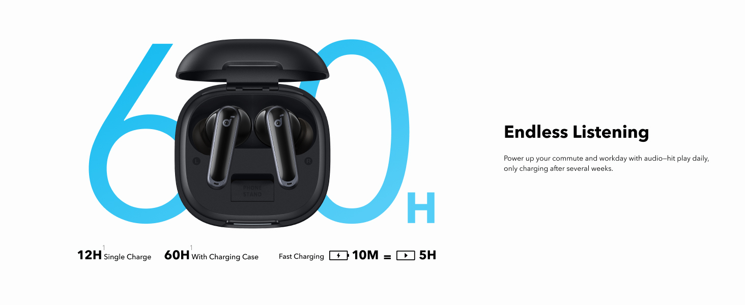 Long, Powerful Battery Life: Enjoy 12 hours of battery life on a single charge with a case that extends it to 60 hours. That's long enough to last weeks, even a month.