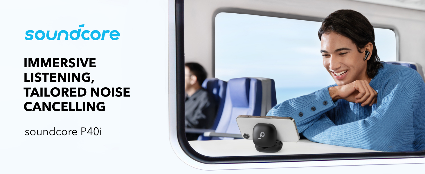 2-in-1 Charging Case and Phone Stand: soundcore P40i wireless earbuds feature a unique charging case, doubling as a phone stand, allowing you to enjoy shows hands-free. This multi-functional design enhances your video experience when you're on the go.