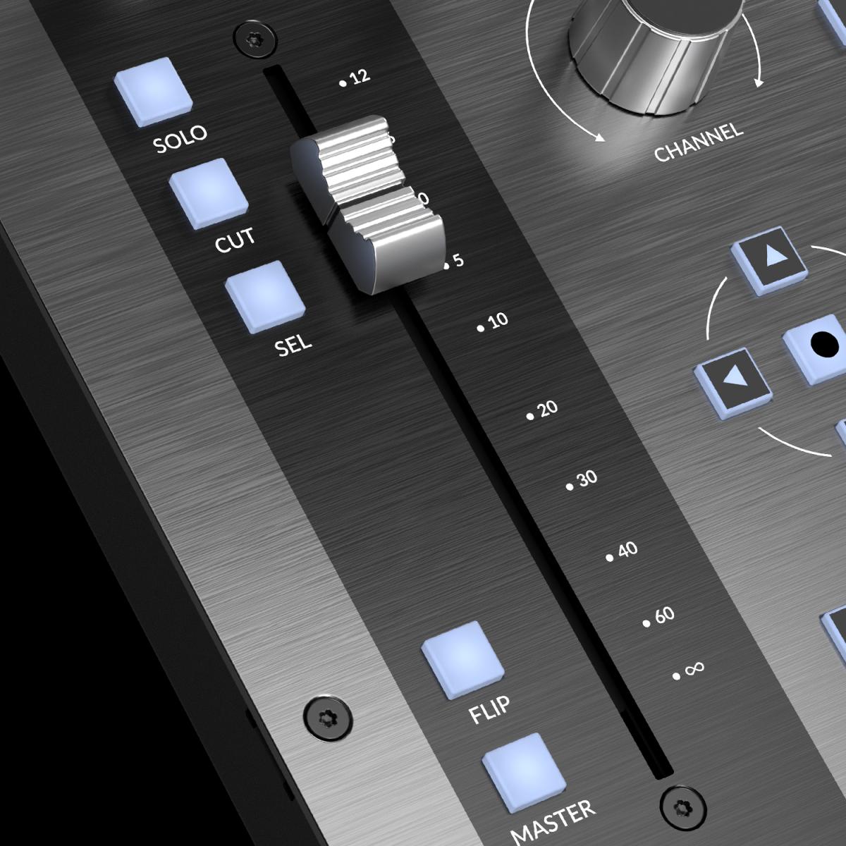 UF1’s large, multi-purpose notched encoder allows for channel banking, mouse wheel emulation (Focus mode) and control of computer system volume.