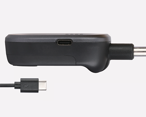 Charge the transmitter and receiver at the same time using the dual USB-C cable and any 5V 2A USB power supply. Charging for two and a half hours gets you 5 hours of play time; 1.25 hours gets you 2 hours of play time, and 30 min of charging gets you 1 hour. The units can be used while charging, but keep in mind that it’s best for the longterm life of the batteries if you don’t leave them plugged in and fully charged for extended periods.