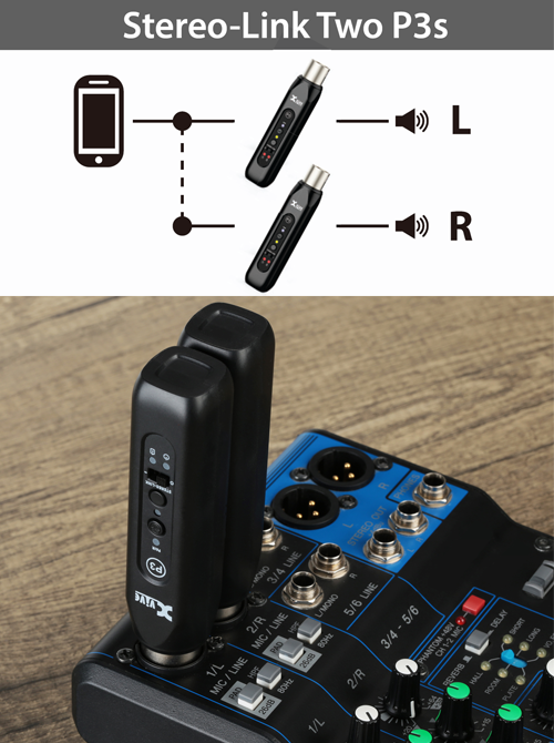 Although left and right channels are summed to mono when using one P3, two P3s can be linked to receive a stereo signal. The P3D stereo Bluetooth receiver set includes two P3 units for this purpose!